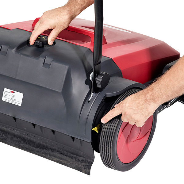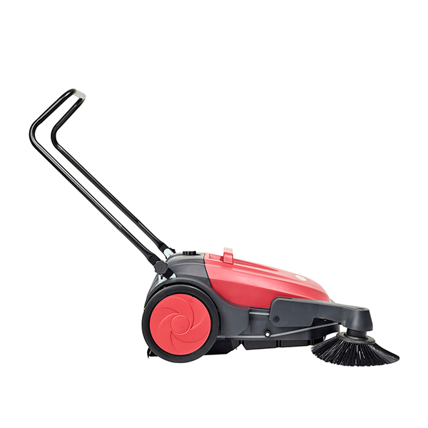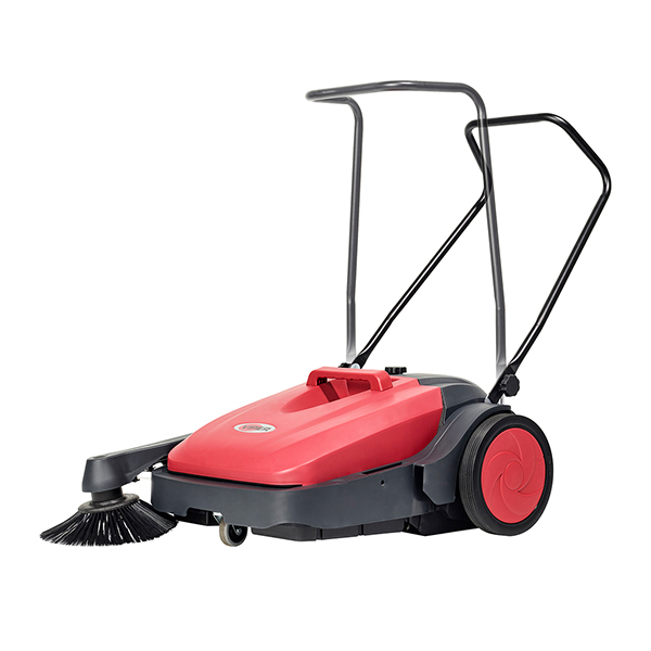 Compact en licht in gewicht, de veegmachine kan ook gebruikt worden in krappe of volle ruimten. De borstel wordt aangedreven door de wielen zodra de veegmachine in beweging wordt gezet door de gebruiker, hierdoor is het geluidsniveau uiterst laag. Er is geen motor, dus overdag is het een stille, aantrekkelijke, kostenbesparende schoonmaak optie.
